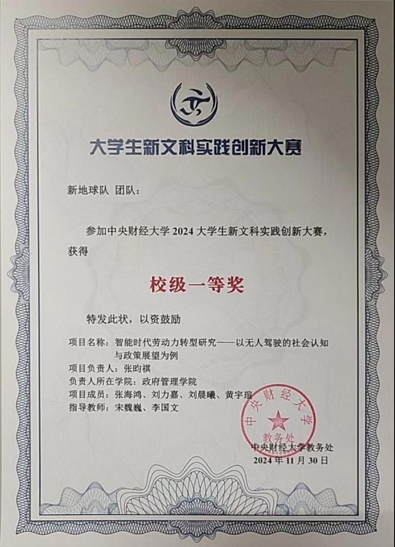 政管学子荣获2024年新文科实践创新大赛校级一等奖