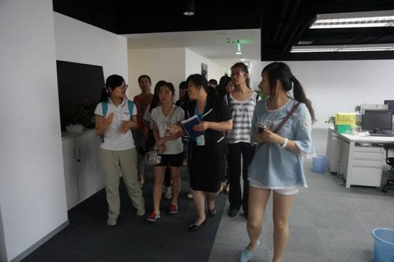 活动最后,零点公司资源部工作人员引导全体师生对公司进行参观。同学们分成3个小组走进零点内部,亲身接触零点的各个部门,进一步了解公司的实际运行过程。零点公司严谨有序的工作流程和工作人员认真专注的工作态度使同学们深受感染,积极向带队老师询问公司各方面的具体情况。至此,两个多小时的学习实践活动结束。
