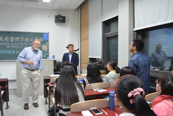 学生自由提问环节,同学们纷纷举手示意提问。Suttmeier教授对“中美创新环境和机制异同”、“是否真正存在市场失灵”、“如何理解‘中国创新’和应该做出怎样的期待”等问题对同学们进行了斟酌解答。课堂在同学们热烈的掌声中圆满结束。Suttmeier教授别样的授课内容向同学们展现了一个严谨新奇的学术世界,极大地开拓了学生的视野。