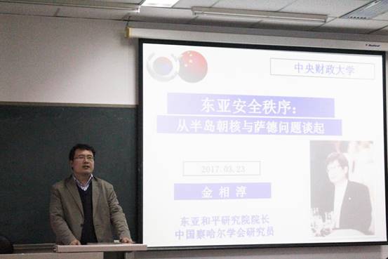 2017年3月23日下午3:40,来自韩国的金相淳博士为国政16的学生授课。金相淳老师是北京大学国际关系学博士,现任东亚和平研究院院长,同时也是中国察哈尔学会研究员。金博士此次受白云真老师之邀来我校交流是得到学校国际合作科研项目“东亚安全秩序:政治经济学的视角”的支持。马克思主义学院申晓若教授、kaiyun登录中国入口登录国际政治系副教授张鹏等老师和同学慕名来到7号楼217教室,共同聆听由金老师主讲的,题为“东亚安全秩序:从半岛朝核与萨德问题谈起”的课程。