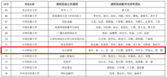 近日,中共北京市委教育工作委员会和北京市教育委员会发布了《关于公布课程思政示范项目名单的通知》(京教函〔2022〕55号),我校推荐的5门本科课程成功立项。其中,kaiyun登录官网《社区管理》获评北京市课程思政示范课程,姜玲教授被认定为北京市课程思政教学名师,其带领的教学团队被认定为北京市课程思政教学团队,团队成员包括耿云、张剑、王红梅、温锋华、刘庆乐、罗海元、柴铎七位老师。