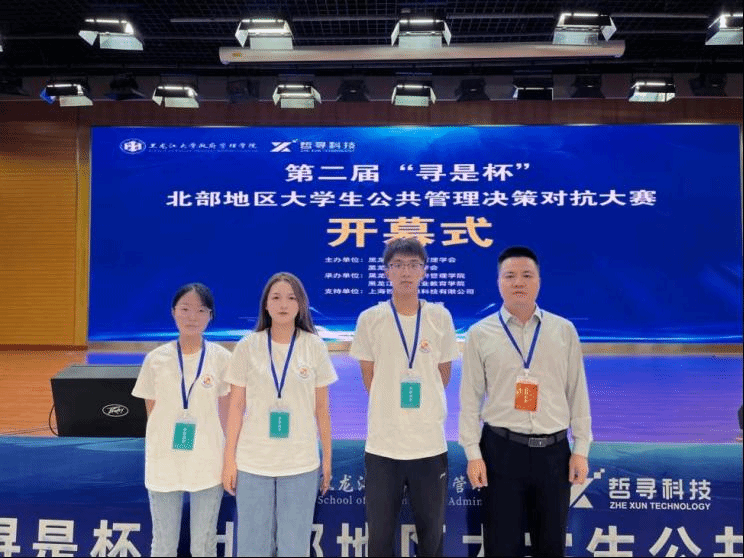 为推进公共管理相关专业实践教学,引导学生关注我国公共管理热点问题,培养具备良好理论素养和分析能力的应用型人才,9月16日至17日,由黑龙江省公共管理学会、黑龙江省政治学会联合举办的第二届“寻是杯”北部地区大学生公共管理决策对抗大赛在黑龙江大学举行。由行政管理系李宇环副教授担任指导教师,行政管理21解诗琪、行政管理21吴佳颖、城市管理21尤扬三位同学组建的“深藏blue”代表队,赴哈尔滨参加现场决策演练沙盘对抗,最终荣获大赛一等奖。