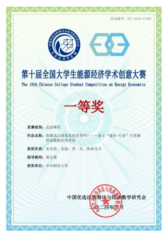 2024 5 18 日,第十届全国大学生能源经济学术创意大赛在中国地质大学(北京)隆重开幕。在本届大赛中,在kaiyun登录官网黄志基副教授的指导下,宋名悦、尤扬、贾一凡、陈林凡夫团队参赛作品《低碳试点政策真的有效吗?——基于“城市-行业”尺度碳排放数据的再评估》荣获北京赛区研究生组一等奖。