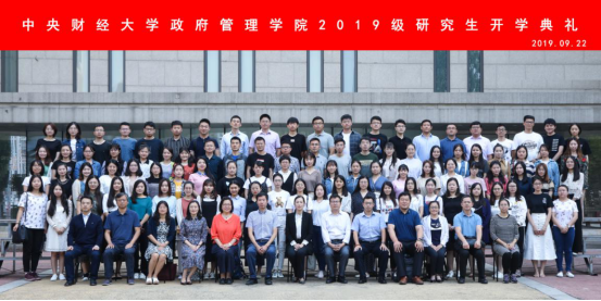 开学典礼最后一个环节为新生入学宣誓,由2019级学术型硕士研究生许雄刚领誓:“谨记中财校训,忠于祖国,服务人民,治学修身,尊师重道,求真务实,开拓创新,勇于担当,追求卓越,以公共管理之学识,成经世济民之良才,以正气浩然上善若水之精神,成中华复兴之伟业”。庄严的宣誓,郑重的誓词,久久回荡在学生心中。最后,参与开学典礼的全体师生在学术会堂前合影留念。