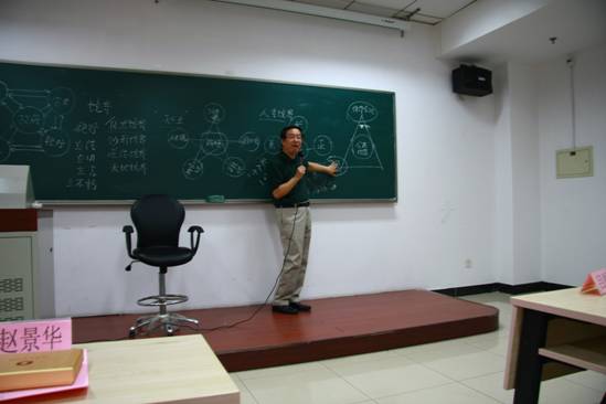 在院长谈治学讲座中赵景华院长首先从自身治学经历谈起,回顾了自己学术研究的几个重要阶段和关键的时间节点,阐述了30年的治学的经验和体会。在谈到治学境界时,赵院长提出了“真、正、长、善、美”的五字箴言,指出唯有“真”,才能实现天人合一的人生境界,唯有“正”,才能拥有内君外王的气质和风度;而“长”是根本,昌盛与长胜之道的载体只能是生命;“善”是方法,是知行合一的表达;“美”是情与景的合一。如能真正将这五字箴言铭刻于心并践行之,人生定有一番大不同。谈到治学方法时,赵院长则认为,要树立正确的“五观”,即创新观,科学观,历史观,战略观,国际观。做学问要静得下心来思考,真正走近研究对象,切记抄袭、拾人牙慧。
