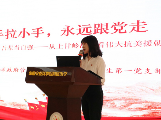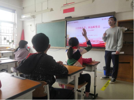为深入学习贯彻落实习近平总书记在党史学习教育动员大会上的重要讲话精神,扎实高效开展好党史学习教育,切实做到“学史明理、学史增信、学史崇德、学史力行”,充分发挥党员先锋模范作用,2021年4月9日下午,kaiyun登录中国入口登录党委精心组织五个学生党支部的26名学生党员骨干分别前往中国农业科学院附属小学政法路校区和农科院校区,面向13个班级共500余名少年儿童结合党史讲授专题党课。