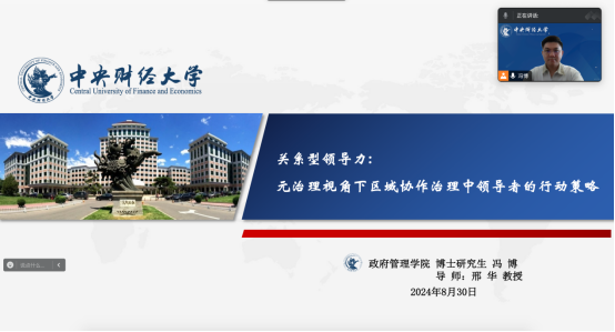 冯博同学的参会论文题目为《关系型领导力:元治理视角下区域协作治理中领导者的行动策略》。该论文以元治理为视角,运用扎根理论方法对长三角生态绿色一体化发展示范区的协作治理案例进行研究,发现关系型领导力作为“干预”型元治理方式的体现,在区域协作治理过程中主要表征为让权策略、共信策略、学习策略、叙事策略四类领导形态的动态组合,在区域协作治理的初始阶段推动边界突破与身份转化,在深化阶段推动冲突化解与行动耦合,在自组织阶段推动共同意识与集体行动。文章认为当前我国区域协作治理仍存在较多障碍,需要以公共价值为导向,通过优化结构和过程等要素提升区域治理的整体性领导力,推动治理系统更有效运转。