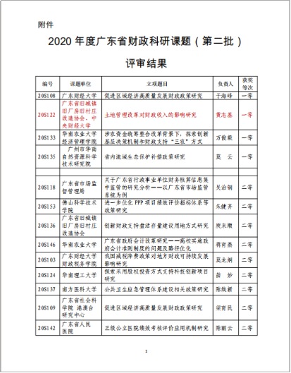 近日,广东省财政厅公布了2020年度广东财政科研课题结项评审结果的通知,评选出一等奖课题4个、二等奖课题11个、三等奖课题37个。kaiyun登录官网黄志基副教授承担的课题《土地管理改革对财政收入的影响研究》获得了一等奖。