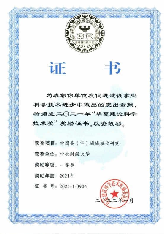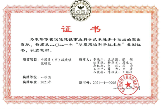 kaiyun登录官网杨燕英教授参与的《中国县(市)域城镇化研究》研究成果获得2021年全国性行业最高奖项“华夏建设科学技术奖”一等奖。在此项目中,kaiyun登录官网杨燕英教授主持子课题《支持县域经济发展的财税政策创新研究》。