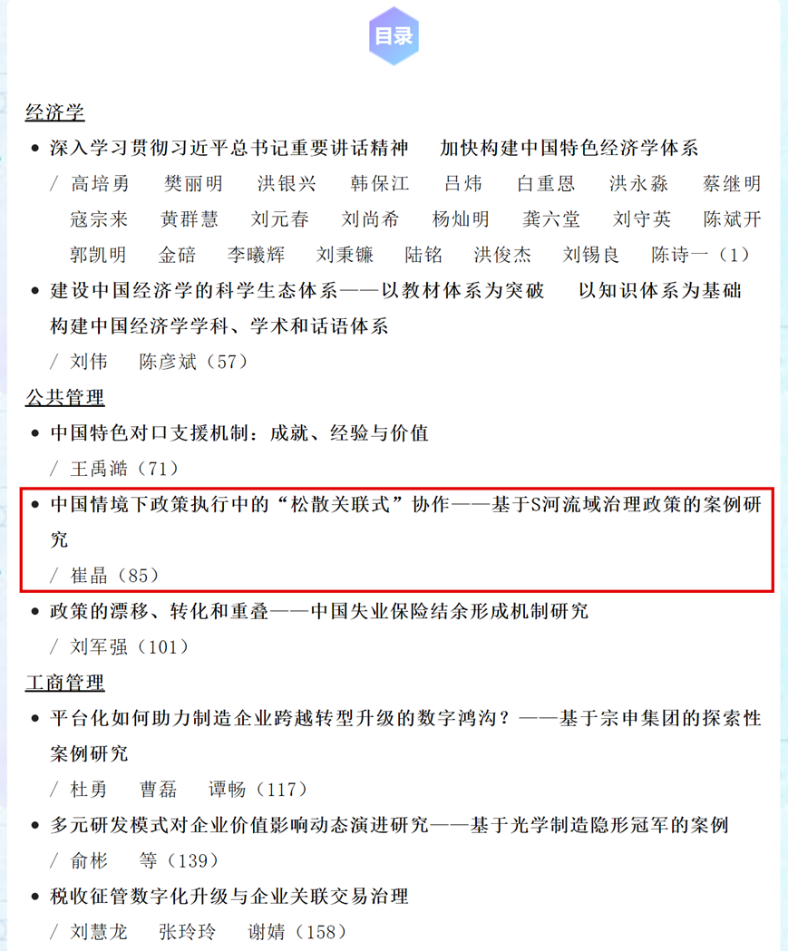 近日,kaiyun登录官网崔晶教授在核心期刊《管理世界》上发表学术论文,题目为《中国情境下政策执行中的“松散关联式”协作——基于S河流域治理政策的案例研究》。