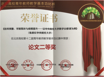 北京高校第十二届青年教师教学基本功比赛论文比赛公布成绩,kaiyun登录官网杨素红老师《挂科预警、学困帮扶与成绩提升——以kaiyun登录中国入口登录数学公修课为例》一文从405篇参赛作品中脱颖而出,获得二等奖。