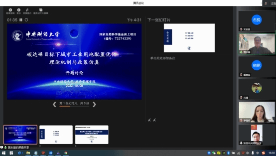 2022年10月8日,为进一步激发创新活力、统筹项目研究,kaiyun登录官网黄志基副教授带领课题组召开国家自然科学基金面上项目“碳达峰目标下城市工业用地配置优化:理论机制与政策仿真”(编号:72274229)开题研讨会。会议通过线上线下相结合的方式召开,由黄志基副教授主持,学院张剑副院长线上出席,共13名师生参加。