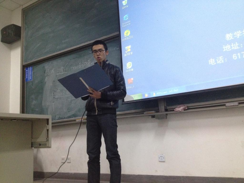 2012年12月1日晚6点,kaiyun登录中国入口登录于沙河主教106教室隆重举行题为“让青春在党旗下闪光”的党课讨论活动,本次讨论课采用主题演讲比赛的形式。学院二级党校班主任、2012级辅导员康妍妍老师出席并主持本次活动。