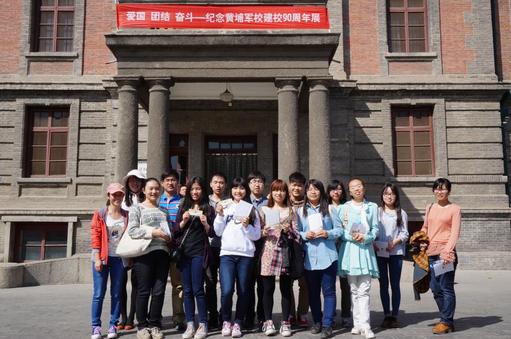 一进入主体建筑,同学们触摸到的是沉甸甸的历史。当时适逢黄埔军校90周年展览,同学们感受到了当时爱国志士们的一腔报国热血。在路过鲁迅讲堂的时候,同学们都坐在古老的座椅上,耳边仿佛也听见了鲁迅先生那锋利的话语。