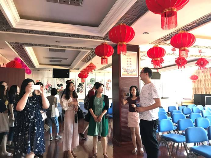 此次实践教学活动得到了夕阳再晨集团及其花园路街道的鼎力支持。夕阳再晨集团创始人张佳鑫博士及其工作人员首先向同学们介绍了花园路街道社区服务中心暨花园路街道党群服务活动中心、花园街道综合文化活动中心、花园路地区社会动员中心的基本情况以及夕阳再晨集团在其中参与社会治理的情况,并带领同学进行了细致的参观。