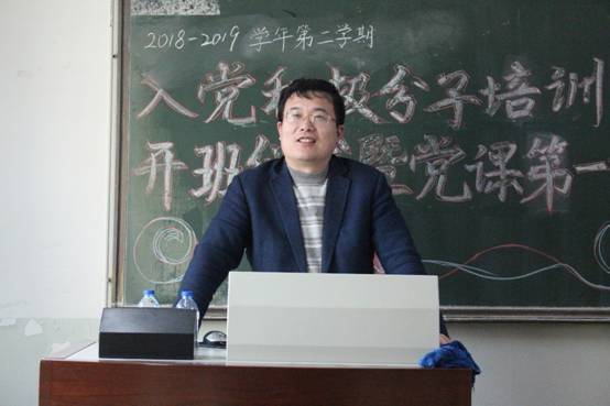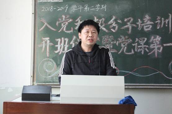 2019年4月3日下午4:00,kaiyun登录中国入口登录2018-2019学年第二学期入党积极分子培训班开班仪式暨党课第一讲在主教学楼409教室准时开始,院党委副书记、党校副校长白云真副教授,院学生工作办公室主任、党校办公室主任张小林老师出席。