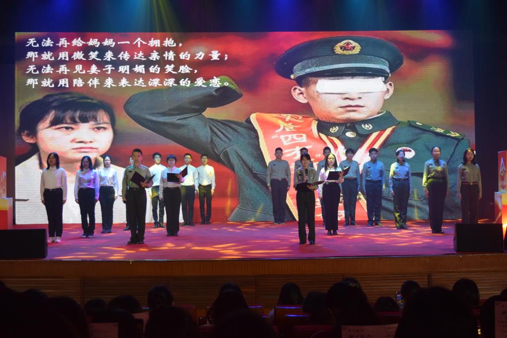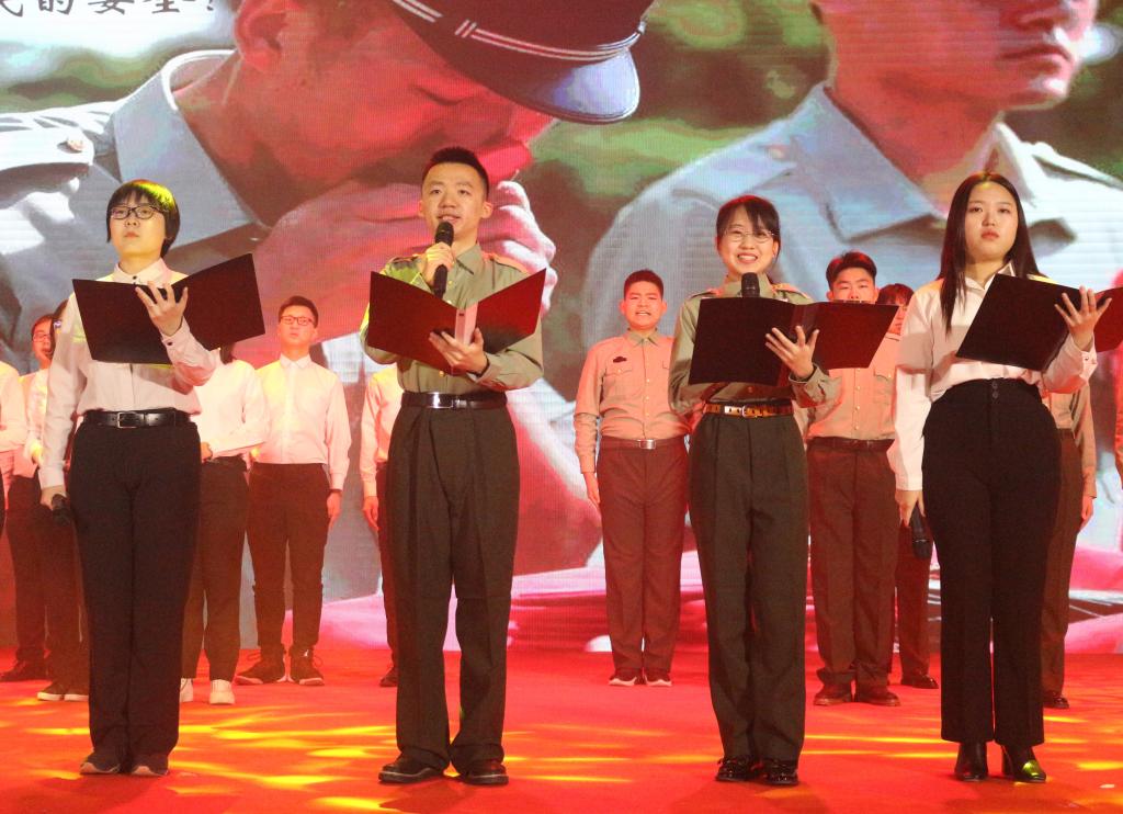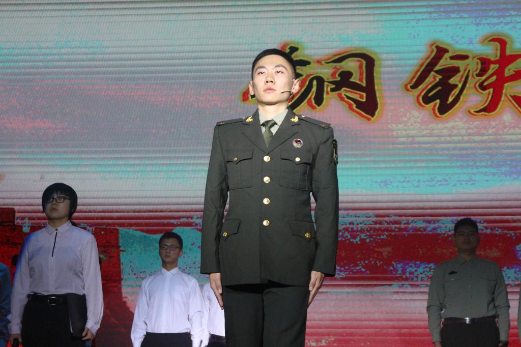 本科生先锋队和龙马长缨社组成的龙马先锋团队诵吟《钢铁长城》。曾经军旅,便终生军魂,铁骨铮铮亦是热血青春。龙马先锋团队声情并茂的朗诵,将一个个军人楷模热血报国的故事细细讲述,带我们走进一颗颗年轻赤诚、坚韧奋进的心。穿上军装,他们守卫祖国疆土,用鲜血浇灌这片土地的富强;拿起书卷,我们筑牢经济防线,用本领书写祖国的辉煌!
