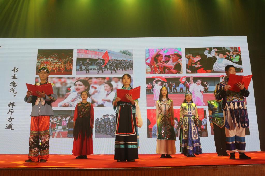 第六支队伍是来自北京学院的丹若赤子团队,他们身着绚丽多彩的民族服装,献上《青春志,民族情,中国梦》。他们来自五湖四海,共同点亮中华天空;他们讲述无惧天灾,歌咏同胞相助相守;他们传递民族温情,肩负使命共话赤子志气。五十六个民族只有一个共同的名字——中华民族,不尽相同的面庞俱是中华儿女。回望历史,我们拥有辉煌的华夏文明;展望未来,我们共同续写中华的传奇!