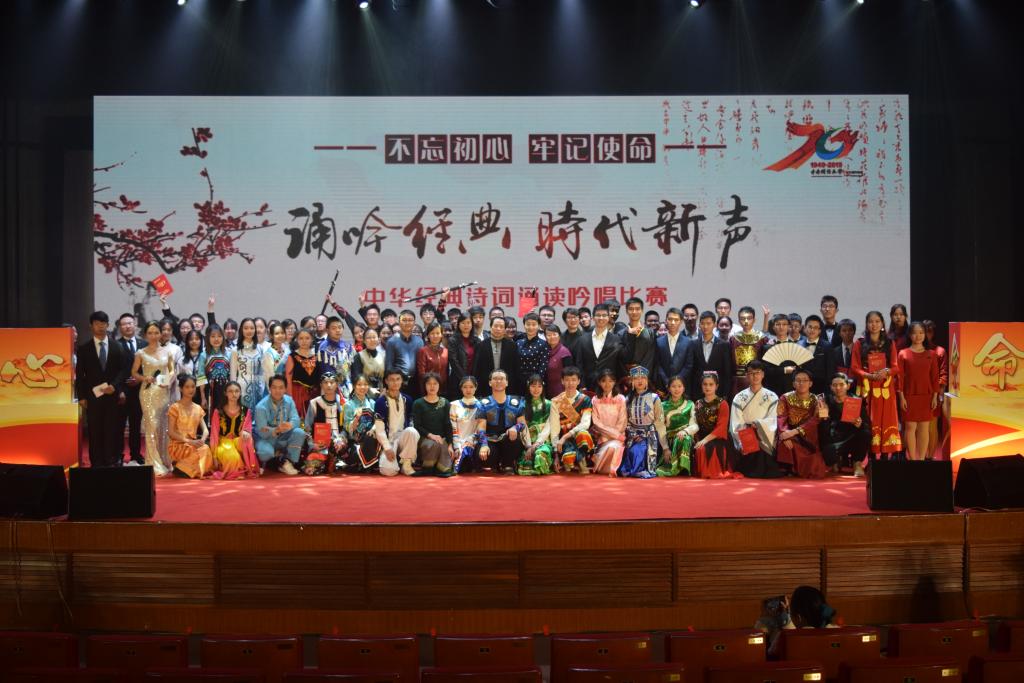 经过广泛报名与层层选拔,来自12个学院的150余名同学组成的7支代表队进入最后的比赛。七支队伍和诗以歌,和文以请,诵吟文化经典,发出时代新声,呈现了一场精彩的文化盛宴。