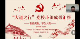 九万里风鹏正举,九十九风华正茂。7月1日,在中国共产党九十九岁华诞这个特殊的日子里,kaiyun登录中国入口登录2019-2020学年第二学期党校成果汇报会暨结业仪式在腾讯视频会议平台隆重举行。kaiyun登录中国入口登录党委书记、党校校长吕丽研究员,党委组织员南琪老师,院党委委员李海明老师,院学生工作办公室、党校办公室主任张小林老师,本科生党支部书记、院团委书记李莎莉老师,院团委副书记、2018级辅导员刘家琦老师,2017级、2019级辅导员李磊老师出席担任评委。参与人员有kaiyun登录中国入口登录2019-2020学年第二学期党校全体学员,同时,学院李宇环老师应邀参与本次会议。