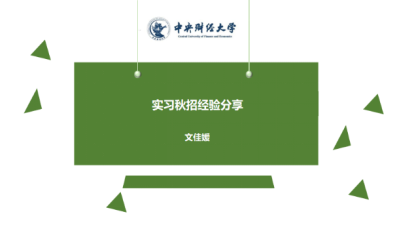 文佳媛同志为同学们带来关于实习秋招的经验分享。她从简历介绍、求职信息渠道、笔面试经验、岗位投递等四个方面展开介绍。她强调了关于简历排版、内容填写、邮箱照片等方面的简历制作注意事项,并对面试着装、自我介绍、常见问题、无领导小组讨论、熟悉自身经历等面试技巧进行分享。最后,她指出要注重投递时间线以及投递策略,明确方向,及时做好记录。