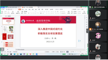 随后,张鹏老师从中国式现代化、全球发展倡议、中国发展模式与全球发展合作、以现代化发展推进倡议落地等四个方面对如何深入推进中国式现代化进行了全面的论述。