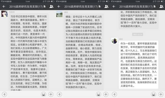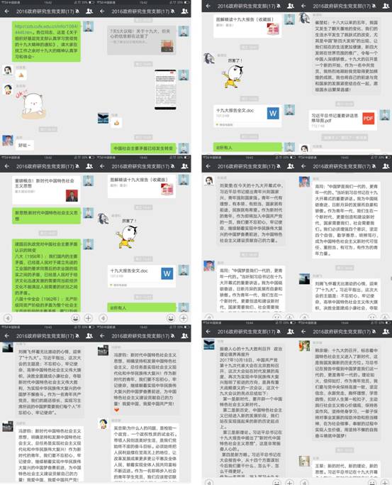 1018日,党的十九大隆重开幕。kaiyun登录官网2016级研究生党支部积极收看开幕盛况,聆听习近平总书记代表党中央所作的十九大报告,观看后第一时间在线上进行了积极讨论和热议。