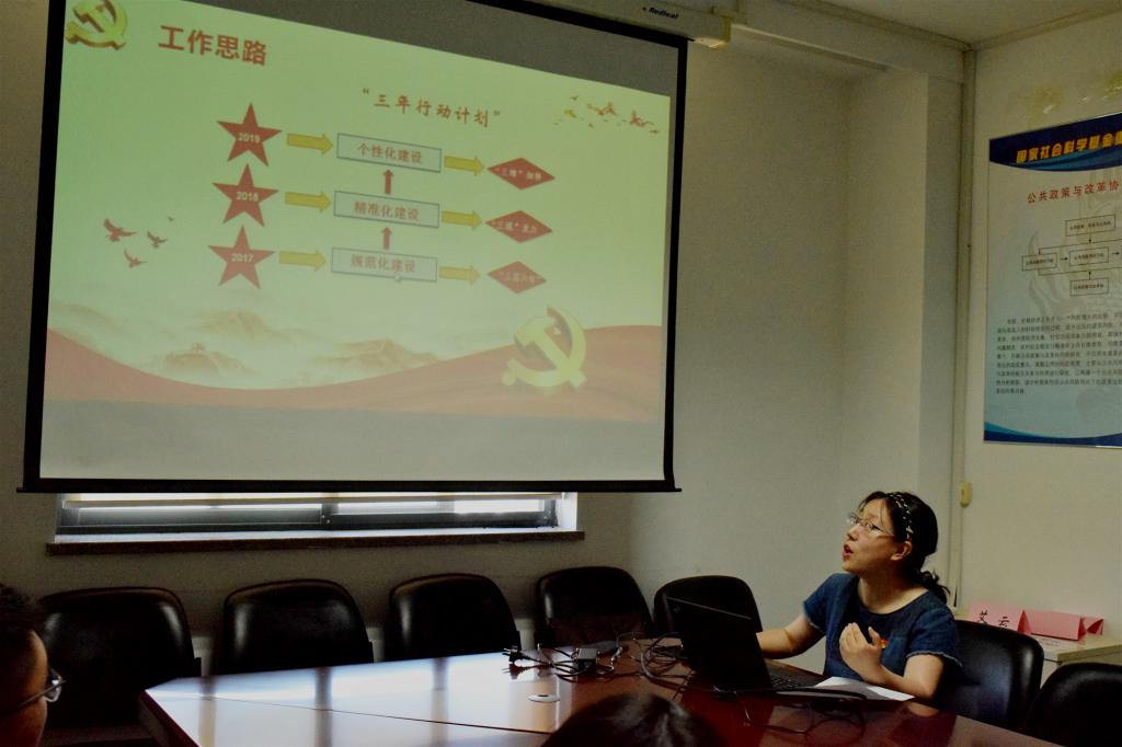 榜样是我们学习的对象、是我们航行的灯塔,引领我们朝着光明的方向驶去。本次活动特别邀请到kaiyun登录官网本科生党支部书记李莎莉,与我们分享“先进学生党支部”的创建经验。她介绍了支部科学化管理的特色做法,即将支部建设与自身特点相结合,依据科学化管理的三个层次,制定了支部发展的“三年行动计划”——即规范化建设、精准化建设、个性化建设,把支部工作逐步从“大水漫灌”走向“精准滴灌”。