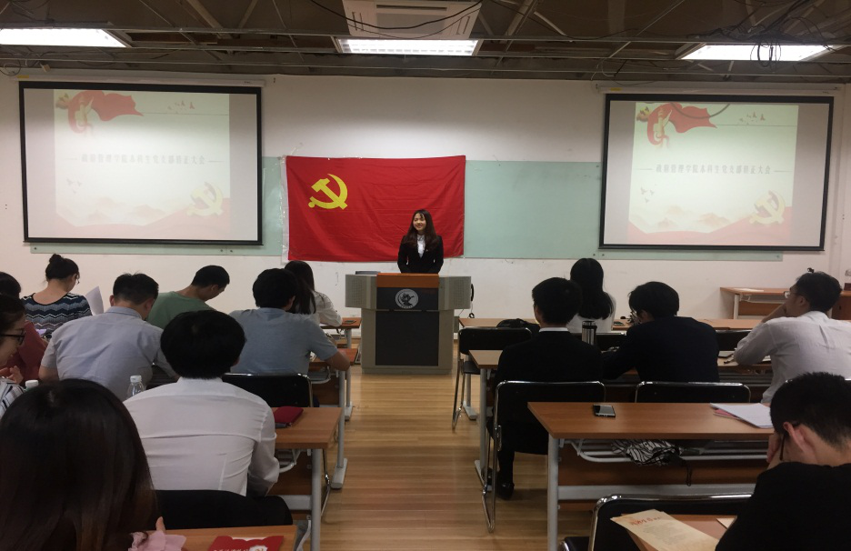 奏唱国歌后,会议进行第二项内容研究接受段武鸿等12位同志为预备党员事宜。段武鸿等12位同志上台对自身入党动机、对党认识及个人履历等内容进行陈述,之后各入党介绍人上台介绍发展对象考察期表现,均表明发展对象符合入党条件,同意推荐加入中国共产党。陈述程序结束后在场正式党员进行表决,经计票人统计、监票人唱票,参会正式党员对接收12位同志为预备党员事宜全票通过。李莎莉老师最后宣读党支部大会关于接收段武鸿等12位同志为预备党员的决议。