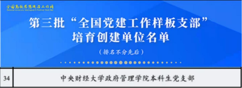 近3年来,党支部荣获2020年北京高校先进党组织,学校首批样板支部,学校2017-2019年度先进党组织; 2位学生党员荣获北京市“三好学生”,获北京市“双百行动”计划立项6项,其中示范团队1支,优秀团队2支,城市管理19班获北京市优秀班集体等。