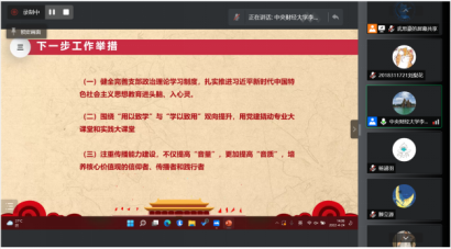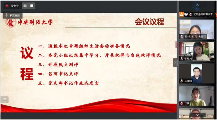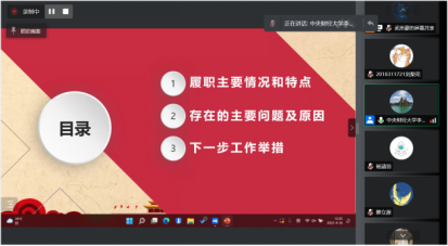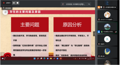 为深入学习贯彻习近平新时代中国特色社会主义思想和党的十九届六中全会精神,不断推进党的建设新的伟大工程,kaiyun登录中国入口登录本科生党支部于4月24日下午线上召开了2021 年度组织生活会和民主评议党员。支部全体党员参加了会议,kaiyun登录中国入口登录党委书记吕丽出席会议并讲话。会议由本科生党支部书记李莎莉老师主持。