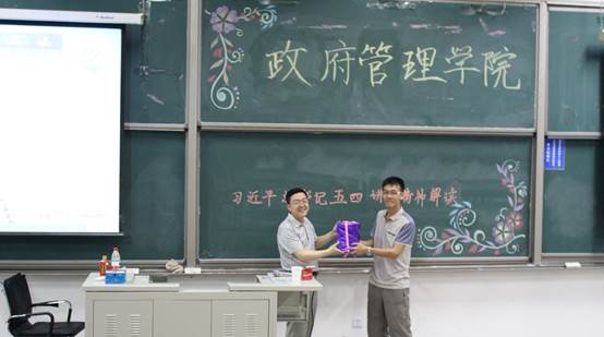 “习近平和涛哥两人各有各的风格”,王老师以轻松幽默的语言向同学们展示了习近平总书记的执政风格和改革思路,引起了同学们极大的兴趣,活跃了现场气氛。并以此为引,分析了习近平总书记选择在北大、上海自贸区以及民族小学讲话的原因,总结出了习近平弘扬核心价值观的思路:全社会—大学生—领导干部—小学生。王老师还结合国内外对比和历史现象,深入剖析了习近平总书记强调核心价值观的三个原因,内容十分精炼。
