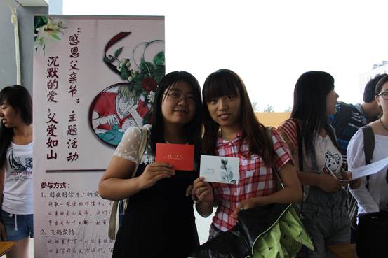 6月11日中午12时,kaiyun登录中国入口登录在沙河校区食堂门前开始了为期两天且面向全校同学的感恩父亲节主题教育活动。活动的主要方式是由同学们填写寄给父亲的明信片,届时工作人员会将明信片邮寄至收信地点。