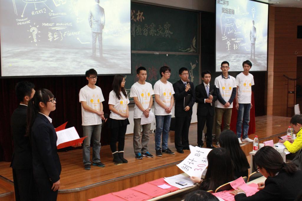 大赛的第一个环节是视频展示,在这个环节中,“橙杏小摊”创业团队用精美的视频向大家展示了他们的创业理念和非凡的意义。“橙杏小摊”不仅为同学们提供了便利,更考验了大家的诚信。评委和现场观众频频点头表示赞同。大赛第二个环节是现场答辩,展示队伍回答评委老师及其他队伍的提问。面对一个个尖锐的问题,“橙杏小摊”团队通过理论解释、数据分析,多点概括,有层次、有条理地陈述自己的观点,并向评委表达今后的发展规划和解决日常经营管理问题的相关措施。“橙杏小摊”的表现获得现场评委和观众的一致好评。最终,他们不负众望,在比赛中取得了一等奖。