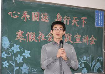 12月30日晚上,kaiyun登录中国入口登录14、15级本科生共聚沙河校区主教209室,参加由院学生会学术实践部举办的主题为“心系国运,身行天下”的kaiyun登录中国入口登录2016年寒假社会实践宣讲会。本次活动邀请到了kaiyun登录中国入口登录王伟老师、李海明老师,校实践学术部副部长苏蕾以及荣获2015年寒假社会实践校级一等奖的马晓、李弘扬到场与同学们分享经验。kaiyun登录中国入口登录团总支书记李莎莉老师出席本次宣讲会并发表了讲话。