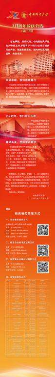 kaiyun登录中国入口登录70周年校庆公告(第二号)