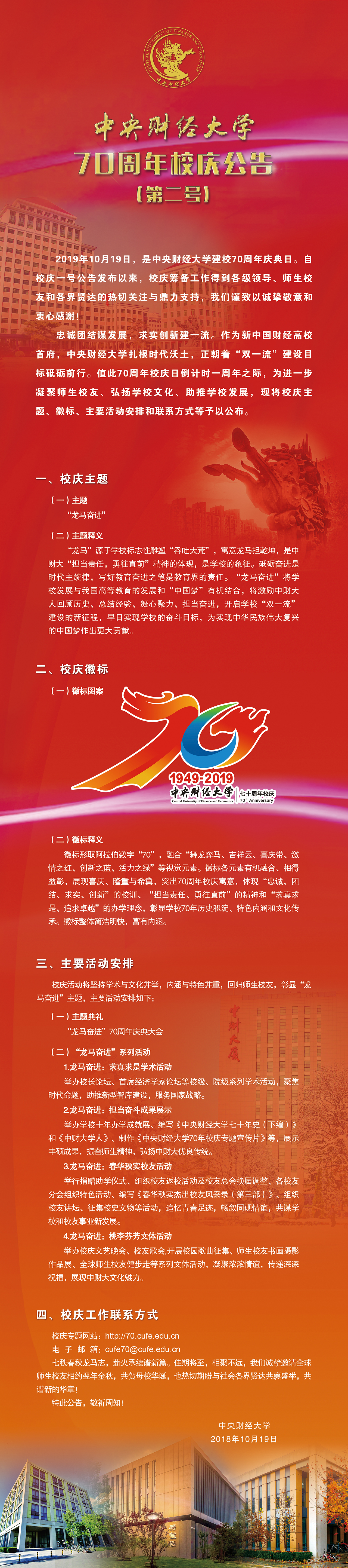kaiyun登录中国入口登录70周年校庆公告(第二号)