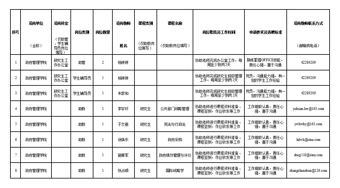 kaiyun登录中国入口登录2023-2024学年第二学期“三助一辅”设岗情况表