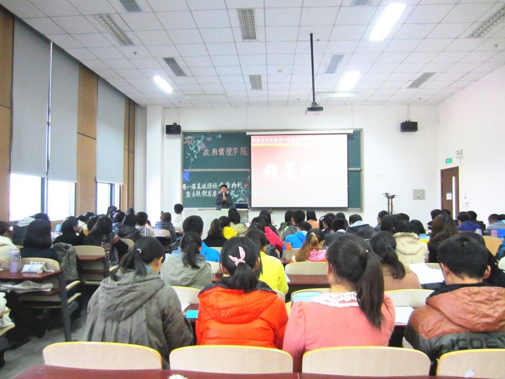 在组织部副部长唐芊同学的主持下,活动第一项领导致辞环节开始进行,由张小林老师上台发表讲话。首先,张老师从一个“应聘者买土豆”的故事开始引入,告诉同学们做事要灵活,要有长远的眼光,不能按部就班,因循守旧。接下来,张老师又就“何为优秀学生干部”、“学生干部应该具有的基本能力“和”团队精神”等方面为大家带来了精彩的讲解。