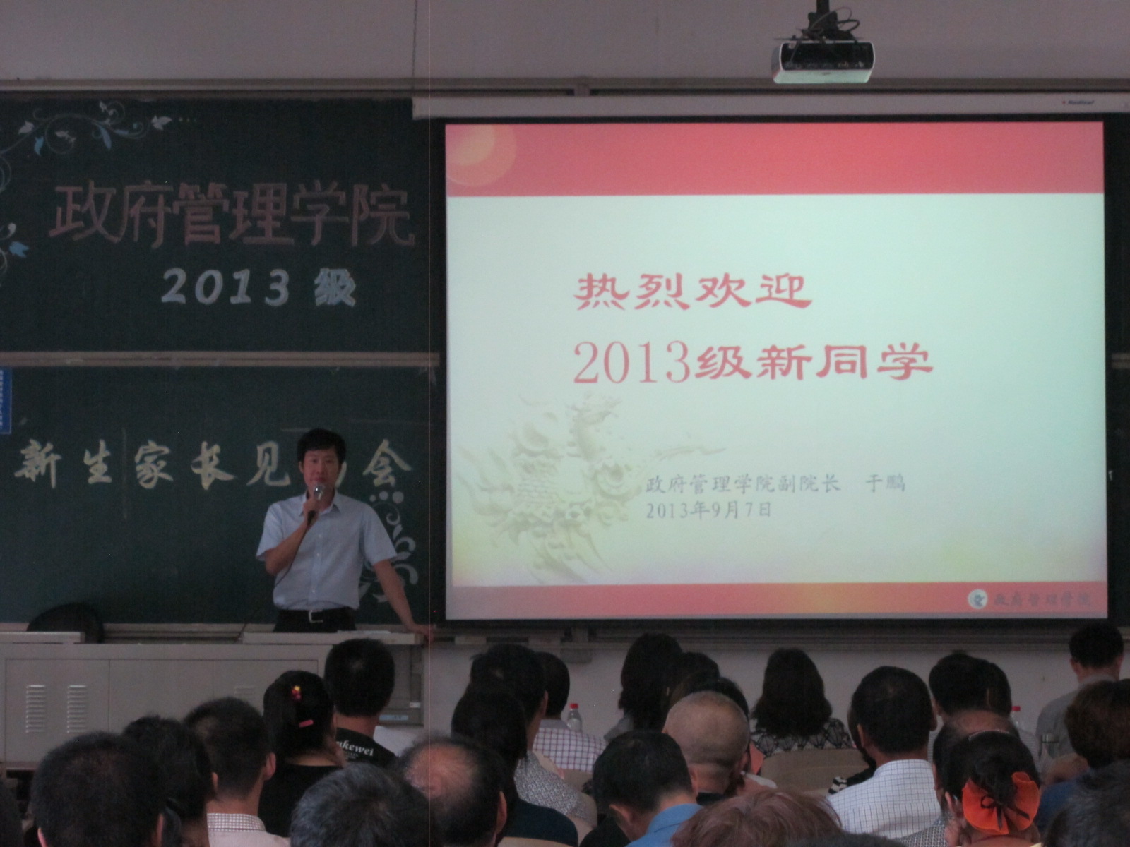 阵阵掌声过后,副院长于鹏上台发表重要讲话。他亲切又细致地介绍了学校和学院工作情况。表示kaiyun登录中国入口登录的成立和发展顺应政府改革的历史潮流及经济社会对公共人才的需求,处于蓬勃发展阶段。紧接着,他分别深入介绍kaiyun登录官网的学科发展、师资队伍、国际合作和研究生教育,让大家对学院有了初步认识。在学院本科生培养特色方面,副院长于鹏提出“一个中心、五个基本点、内涵提高、特色强院”的宗旨目标,展开介绍kaiyun登录官网本硕博升学通道、学科优化、教学管理、导师制等多种特色。学院品牌活动和丰富多彩的学生活动也极大地提高了新生及家长的期待值。对于大家关注的就业方向问题,副院长于鹏也一一详细介绍:考研、出国留学、公务员等多重选择让新生对自己的将来有了大致的了解。一个多小时的讲话结束,台下报以热烈掌声,在座各位都对这个可以施展才华、收获真知、积极向上的学院充满希望。