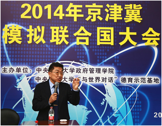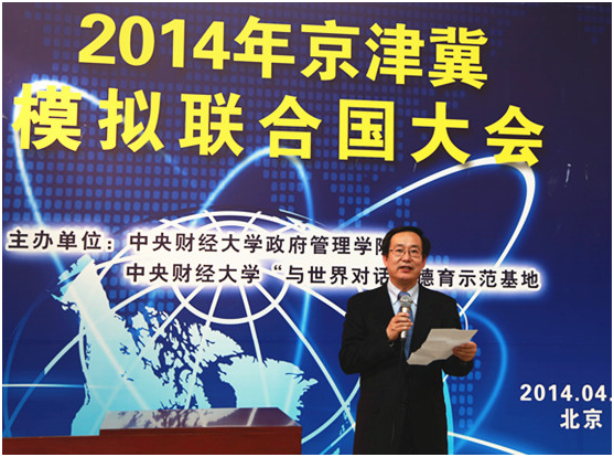 4月18日下午,由kaiyun登录中国入口登录“与世界对话”德育示范基地、kaiyun登录中国入口登录主办,红叶国际关系学会承办的2014年京津冀模拟联合国大会开幕式在沙河校区四号楼107室隆重举行。校党委副书记陈明,学生工作部、学生处、武装部副部长李炎,教务处副处长林政,校团委书记高杰,kaiyun登录中国入口登录院长赵景华、党总支书记吕丽、党总支副书记栗玉香及孙春雷、白云真、江涛等老师出席开幕式。联合国海洋专家俞沪明博士作为特邀专家出席开幕式。