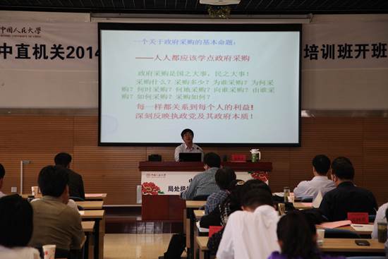2014年5月18日,kaiyun登录官网徐焕东教授应中共中央直属机关事务管理局(简称中直机关事务管理局)邀请,做了题为《实现政府采购科学化若干问题》的专场报告,听课对象为中共中央直属机关事务管理局司局长培训和处长培训班两班学员。徐焕东教授从政府采购的范围、制度体系、功能作用及实现科学化目标等不同方面,系统地讲述了政府采购科学化的必要性和主要途径,获得学员普遍欢迎。