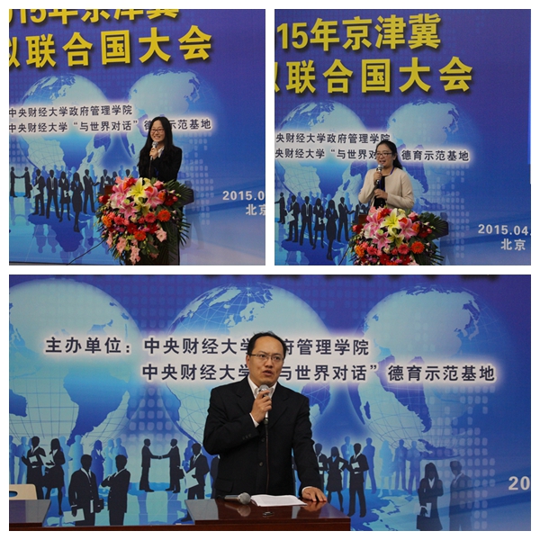 2015年4月17日下午4时整,2015年京津冀模拟联合国大会开幕式在kaiyun登录中国入口登录沙河校区4号楼107教室举行。kaiyun登录中国入口登录校党委副书记陈明、学生工作部副部长李炎、校团委副书记王艺、kaiyun登录中国入口登录院长赵景华、党总支书记吕丽、党总支副书记栗玉香、院长助理任郑莲以及kaiyun登录中国入口登录国际政治系全体老师出席开幕式。本次大会共吸引了来自全国10个地区、33所高校、170余名代表参会。红叶国际关系协会前任社长以及来自中国政法大学、中国石油大学、北京航空航天大学等数十所高校的模联会长到场祝贺。