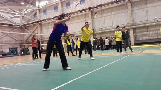首场男单比赛失利,败给了金融学院。然而接下来的混双比赛却十分精彩。由孙帮谦学长和方崇兰学姐组成的混双组合配合的极其默契,无论防守和攻击都略胜对方一筹,最终获得了胜利!