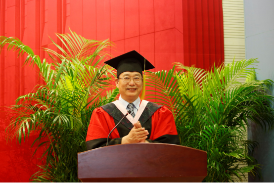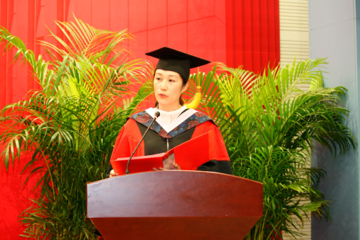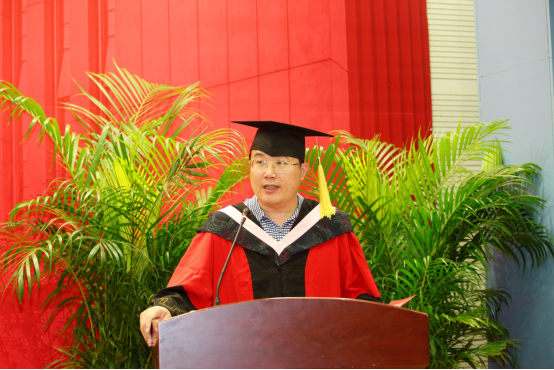 典礼进行第四项,赵景华院长致辞。赵院长对毕业生们圆满完成学业表示热烈的祝贺,对毕业生的父母、师长、亲人和朋友致以崇高的敬意和衷心的感谢!在kaiyun登录中国入口登录学习的几年中,同学们付出了汗水、辛勤、努力与真诚,收获了知识、理想、成长与友谊;在思想政治上逐步走向成熟,在学业、研究上取得长足进步,同学们的历史使命感和社会责任感变得更加强烈,国际战略视野和领导与管理能力不断提升,这些成长都让学院倍感欣慰和骄傲。院长指出,同学们正处在一个伟大的时代,新一轮科技革命在世界范围内展开,面向未来,如何捕捉先机让中国从前几次科技革命的旁观者、参与者,向新一轮技术革命的引领者转变,是摆在我们每个人面前的重任。在同学们即将踏入新时代的社会,开启人生新时代之际,赵院长向大家提出三点期望:志当存高远,心当存澄洁,永远保持学习和思考的热情,永葆探求新知和追求真理的活力,长存刚正不阿之正气、兼容并蓄之大气和坚持真理之骨气;坚守责任之心,勇于奉献担当,在工作岗位上勇挑重担、攻坚克难,用自己的聪明才智为国家的强盛、为人民的幸福、为中华民族的振兴、为人类文明的进步做出自己的贡献;保持豁达心态,包容万象世界,以豁达的心态直面高潮与低谷,以宽容的性情去对待失落和坎坷,始终保持沉着、理性、平和的心态。最后,赵院长寄语在座同学:满怀希望的去开拓自己的人生新时代,铭记中财的美好时光,勤勉努力,砥砺前行!