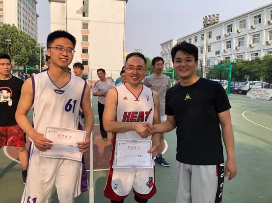 比赛结束后,校教工篮球协会秘书长李漠叶老师为来自教工队的“单挑王”曹堂哲老师与来自MPA队的“金投手”黄英颁奖,团委副书记刘家琦为本科生队和学术研队颁奖,副院长于鹏老师为教工队和MPA队颁奖。