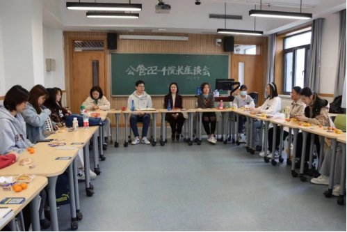 姜玲老师认真听取了同学们的发言,肯定了各班的班级建设,逐一解答了同学们的问题并结合具体实例向同学们提出了暖心建议。在学习方面,姜玲老师表示:要把理论问题和实践问题相结合,课上认真学习理论,课外多参加实践活动,做到知行合一;要夯实公共管理基础知识功底,并结合财经底色广泛涉猎知识,比如加强专业课学习、学好微积分、学习第二外语、关注经济局势等,在特定领域不断深耕的同时培养跨学科的思维能力,为成为适应新时代发展的卓越复合型人才不断提升自我。在专业选择方面,姜玲老师向同学们详细介绍了四个专业的特点,指出各学科交叉化和国际化的趋势,同时结合学院去年就业数据,分析了学院各专业的就业和升学情况,增强了大家对未来的信心。姜玲老师也提出了对同学们的期待,希望同学们能够拥有国际观念与大学科的思想,从实践出发、从生活出发,为祖国、为世界贡献自己的力量。最后,在个人成长方面,姜玲老师强调了目标制定与自驱力的重要性。希望同学们能够以完成学习任务为底线,找到自己的优势进行长线发展。学业道路万千,领域万千,同学们应找好方向,为自己设定一个切实可行的目标,通过不懈努力来形成一个向上的循环,多尝试,不设限,不跟风“内卷”,达到一个高质量的自洽状态,追寻自身的人生价值。