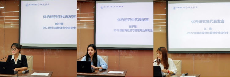 2021级行政管理专业研究生郭小倩、2022级教育经济与管理专业研究生张梦瑶、2022级城市规划与管理专业研究生江燕作为优秀研究生代表发言,向营员分享了研究生期间的学习、科研和生活体会,为营员们答疑解惑。