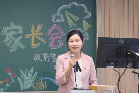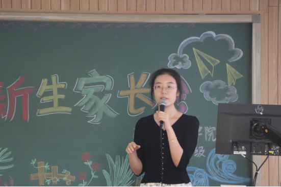 最后,2023级本科生辅导员周明迪老师对自己的日常工作进行了简单介绍,并提出了五个关键词与家长进行分享。第一点是“适应”,希望大家能快速适应生活环境、学习方式等的转变。第二点是“红线”,周明迪老师针对几个底线问题进行了说明。第三点是“放手”,希望家长们可以进行适当地放手,给学生们自由成长的空间。第四点是“沟通”,希望家长与学院紧密联系来共同守护学生们的成长。最后一点是“安全问题”,希望大家能提高警惕,保证自身安全。周明迪老师还为新生提出了七点建议来更好地帮助新生同学们适应大学生活,提升个人综合能力。