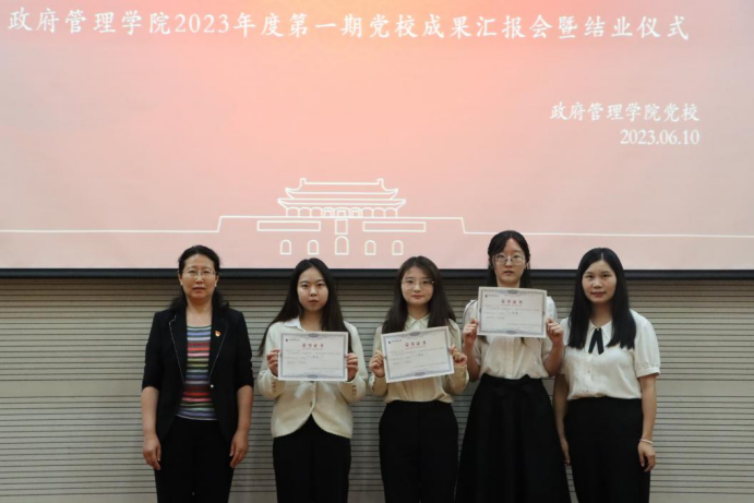 学院组织员张小燕老师宣读顺利结业学员名单,并向56名入党积极分子学员和37名发展对象学员的顺利结业表示祝贺,希望全体学员可以以党校学习为起点,继续端正入党动机,坚定理想信念,明确努力方向。于鹏书记与杨柳副书记分别为发展对象学员与入党积极分子学员颁发结业证书。